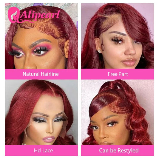 #99J Body Wave 4x4 Lace Closure Wig Human Hair Wigs Brazilian Burgundy Lace Wig For Black Women Pre-Plucked AliPearl Hair Wig
