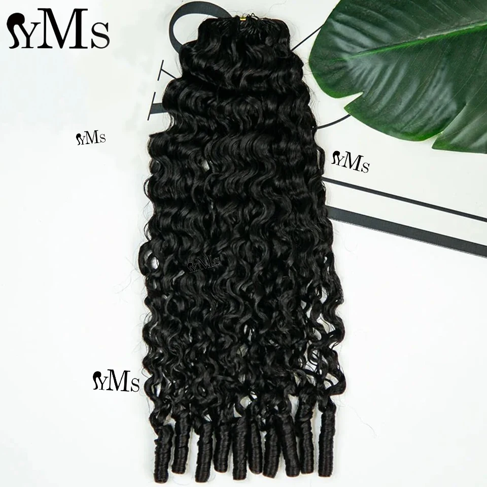 YMS 3C4A Burmese Curly Invisible Crochet Hair Extension Human Hair Feather Crochet Human Hair Extension With String For Women